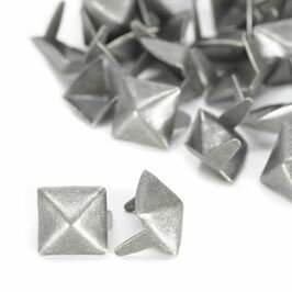【ピラミッド型 スタッズ 2爪 10mm [ アンティークニッケル / 1個 ]】金属製スクエアスタッズ。
