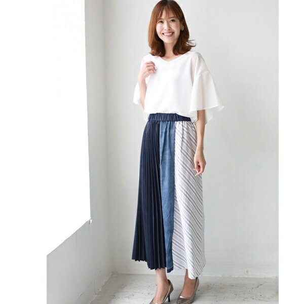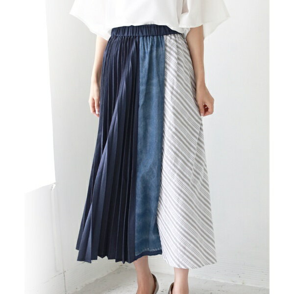 >>商品のお取り扱い方法 ■原産国: 中国製プリーツ×ナナメデニムスカート/リアルキューブ(REAL CUBE)ネイビー(68)ブルー(66)画面上と実物では、多少色具合が異なって見える場合がございます。