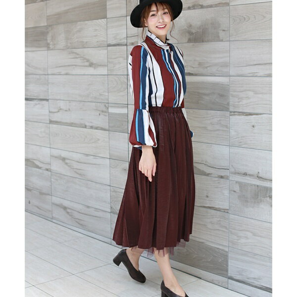 ー リバーシブルチュールスカート −1枚で2Wayの着こなしが楽しめるリバーシブルチュールスカートチュールを中側にすれば、ラメ入りの生地になっているので秋カラーでも重たく見えず、上品に見えるスカートに。