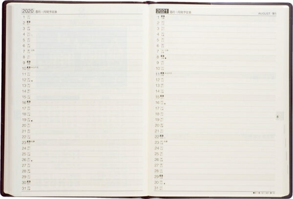 ・2年対比横ケイタイプ・2年間分の1ヵ月が見開きでまとまっており、一覧性に優れています。
