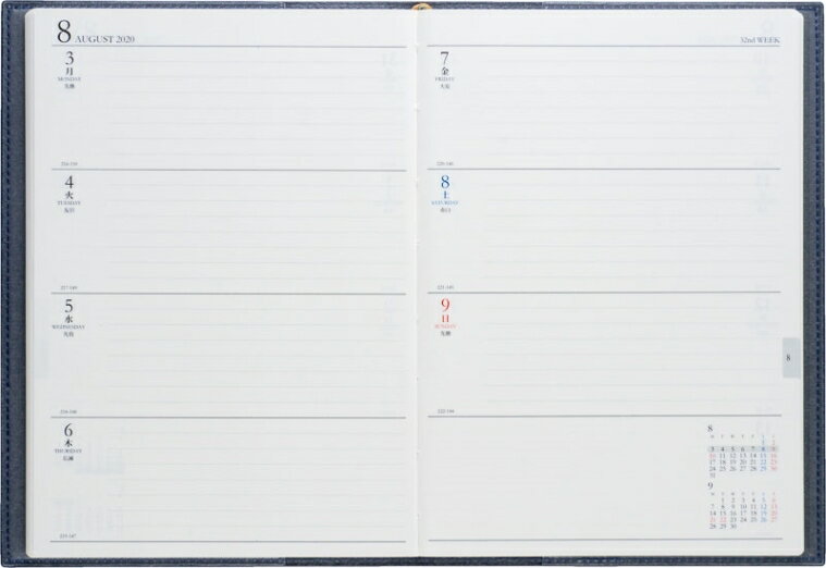 ・商品仕様・スペック・ISBN・978-4-471-79435-4・本体サイズ・A5判(210×148mm)・ページ数・192・レイアウト・1月始まり / 月曜始まり・装丁仕様・皮革調・月間予定表・月間予定表ブロック・週間予定表・セパレート式・月間予定表記入欄・2019年12月〜2021年3月・週間予定表記入欄・2019年12月〜2020年12月・こだわりの付録・横ケイメモ・方眼メモ・年齢早見表・常用漢字表・度量衡換算早見表・印紙税額一覧(抜粋)・慶弔贈答マナー・アドレスメモ、巻頭カレンダー・パスワードリスト・地下鉄路線図(別紙)・東京・大阪近郊鉄道路線図(別紙)カテゴリー ・分類 :ビジネス手帳>ウィークリー>週間セパレート式(ホリゾンタル)・分類 :サイズで探す>ビジネス手帳>A5サイズ・分類 :ブランド名で探す>高橋手帳(TAKAHASHI)>ビジネス手帳・分類 :デザインで探す>ビジネス手帳>ビジネス定番手帳・分類 :用途・機能で探す>ビジネス手帳>ビジネス定番手帳カジュアルタイプのダイアリー
